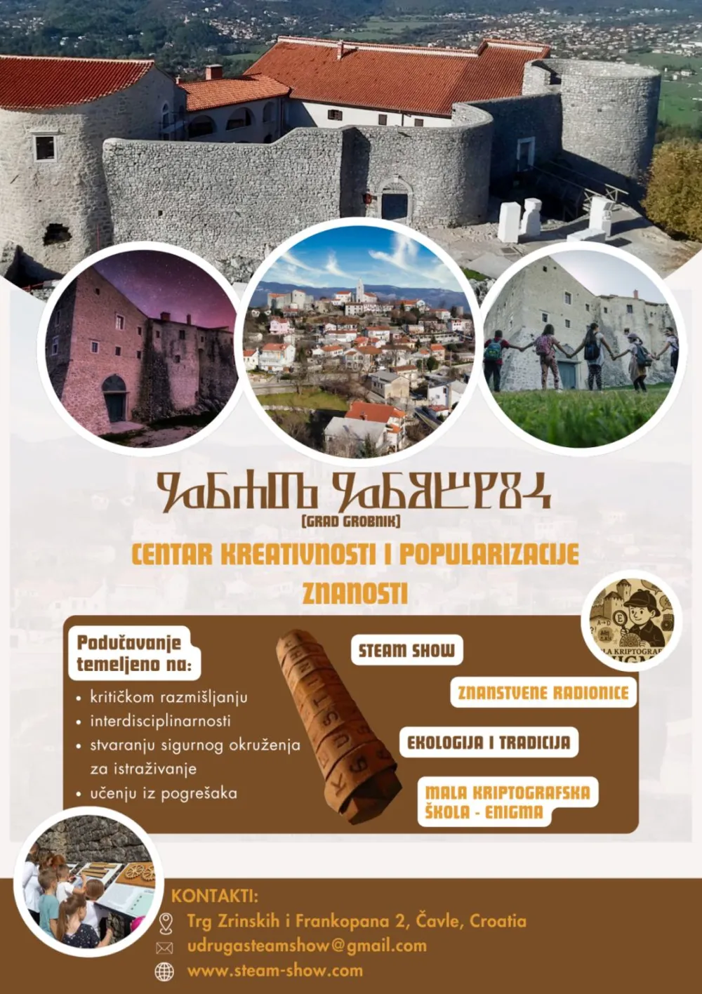 pozivamo vas da nam se pridružite na svečanom otvaranju Centra kreativnosti i popularizacije znanosti – Grad Grobnik, koje će se održati u petak, 12. rujna 2025. u 11:00 sati, na adresi Trg Zrinskih i Frankopana 1, Grad Grobnik (zgrada stare područne škole, između Kaštela i crkve sv. Filipa i Jakova).
